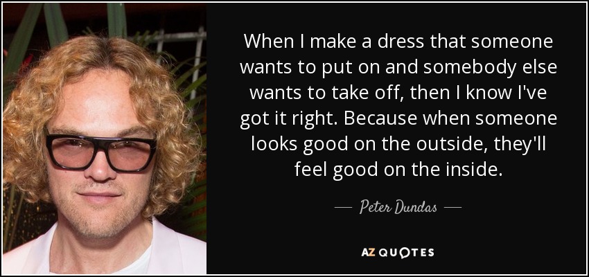 When I make a dress that someone wants to put on and somebody else wants to take off, then I know I've got it right. Because when someone looks good on the outside, they'll feel good on the inside.