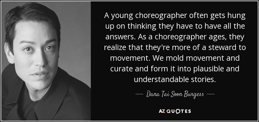 A young choreographer often gets hung up on thinking they have to have all the answers. As a choreographer ages, they realize that they're more of a steward to movement. We mold movement and curate and form it into plausible and understandable stories.