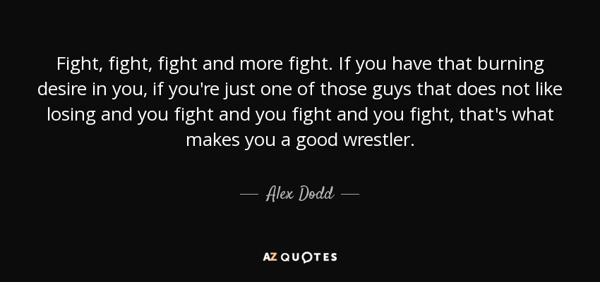 Fight, fight, fight and more fight. If you have that burning desire in you, if you're just one of those guys that does not like losing and you fight and you fight and you fight, that's what makes you a good wrestler.