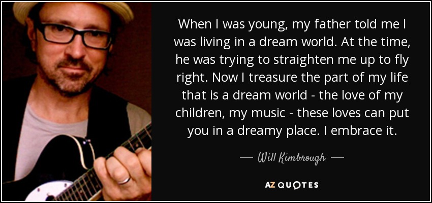 When I was young, my father told me I was living in a dream world. At the time, he was trying to straighten me up to fly right. Now I treasure the part of my life that is a dream world - the love of my children, my music - these loves can put you in a dreamy place. I embrace it.