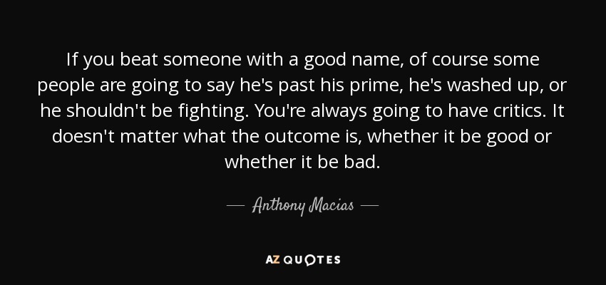 If you beat someone with a good name, of course some people are going to say he's past his prime, he's washed up, or he shouldn't be fighting. You're always going to have critics. It doesn't matter what the outcome is, whether it be good or whether it be bad.
