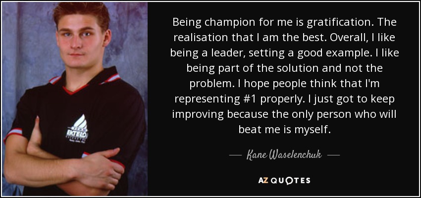 Being champion for me is gratification. The realisation that I am the best. Overall, I like being a leader, setting a good example. I like being part of the solution and not the problem. I hope people think that I'm representing #1 properly. I just got to keep improving because the only person who will beat me is myself.
