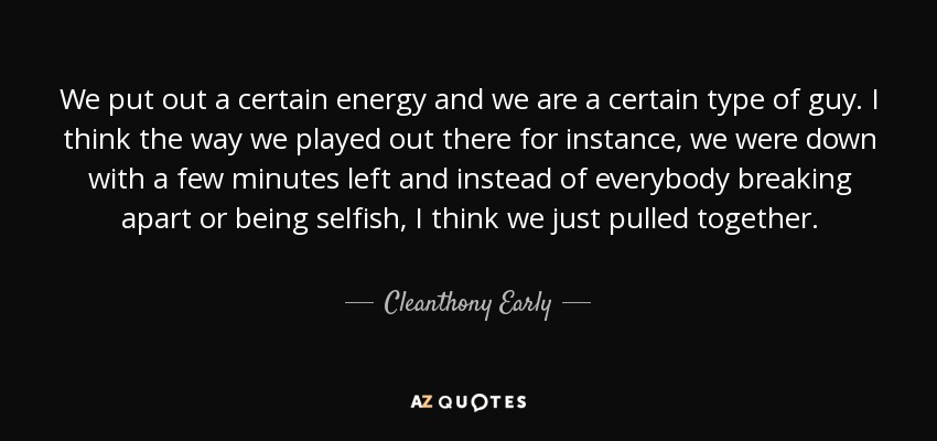 We put out a certain energy and we are a certain type of guy. I think the way we played out there for instance, we were down with a few minutes left and instead of everybody breaking apart or being selfish, I think we just pulled together.