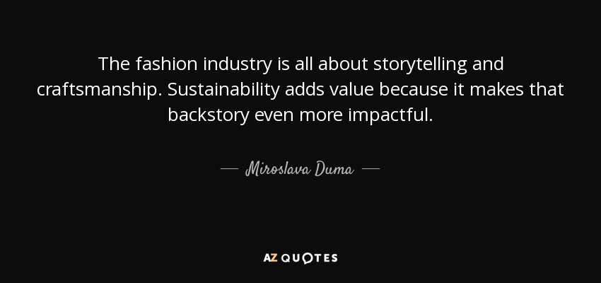 The fashion industry is all about storytelling and craftsmanship. Sustainability adds value because it makes that backstory even more impactful.