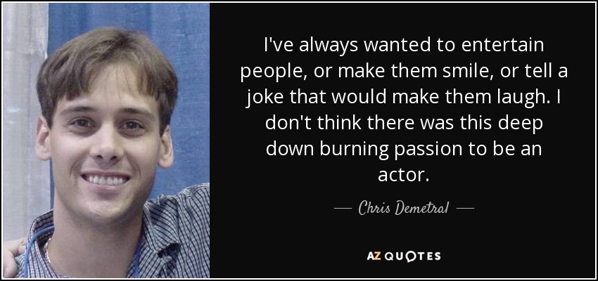 I've always wanted to entertain people, or make them smile, or tell a joke that would make them laugh. I don't think there was this deep down burning passion to be an actor.