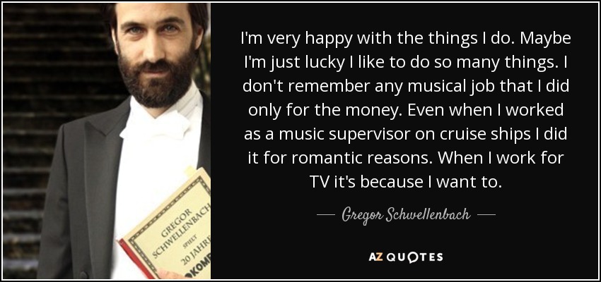 I'm very happy with the things I do. Maybe I'm just lucky I like to do so many things. I don't remember any musical job that I did only for the money. Even when I worked as a music supervisor on cruise ships I did it for romantic reasons. When I work for TV it's because I want to.