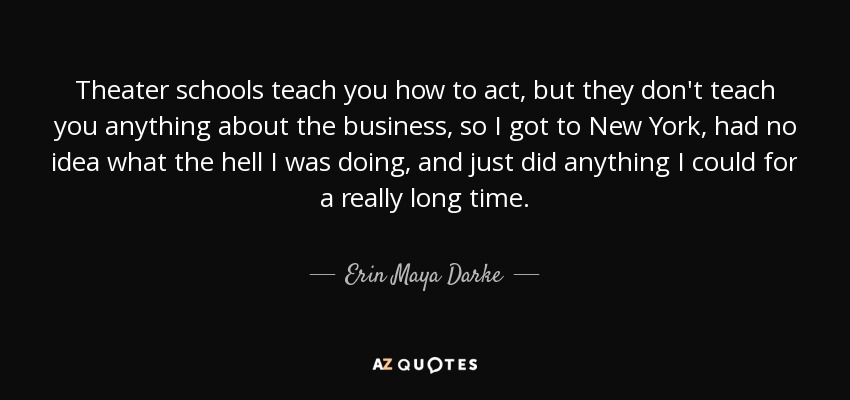 Theater schools teach you how to act, but they don't teach you anything about the business, so I got to New York, had no idea what the hell I was doing, and just did anything I could for a really long time.