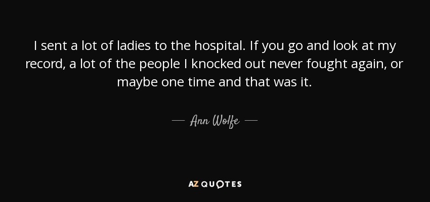 I sent a lot of ladies to the hospital. If you go and look at my record, a lot of the people I knocked out never fought again, or maybe one time and that was it.