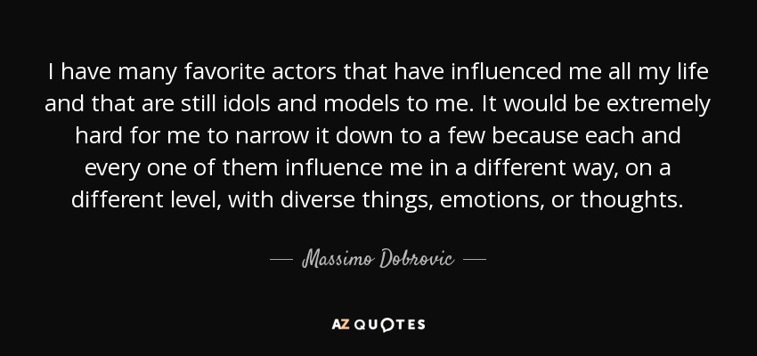 I have many favorite actors that have influenced me all my life and that are still idols and models to me. It would be extremely hard for me to narrow it down to a few because each and every one of them influence me in a different way, on a different level, with diverse things, emotions, or thoughts.