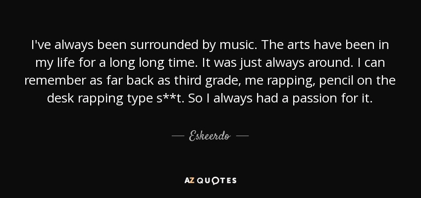 I've always been surrounded by music. The arts have been in my life for a long long time. It was just always around. I can remember as far back as third grade, me rapping, pencil on the desk rapping type s**t. So I always had a passion for it.
