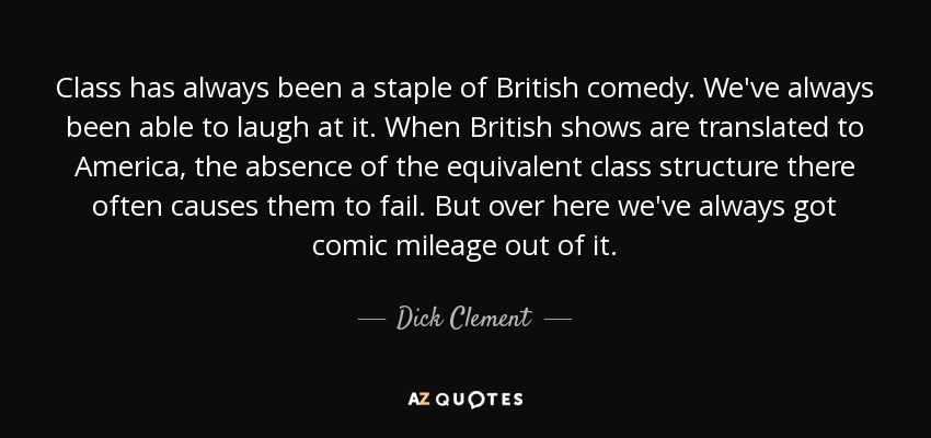Class has always been a staple of British comedy. We've always been able to laugh at it. When British shows are translated to America, the absence of the equivalent class structure there often causes them to fail. But over here we've always got comic mileage out of it.