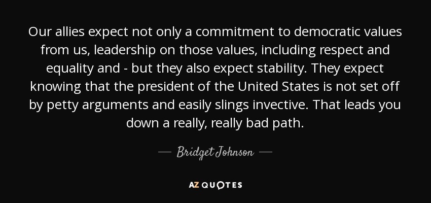 Our allies expect not only a commitment to democratic values from us, leadership on those values, including respect and equality and - but they also expect stability. They expect knowing that the president of the United States is not set off by petty arguments and easily slings invective. That leads you down a really, really bad path.