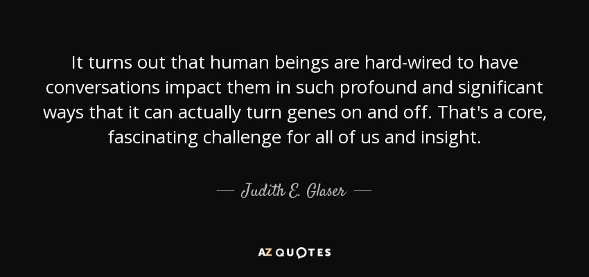 It turns out that human beings are hard-wired to have conversations impact them in such profound and significant ways that it can actually turn genes on and off. That's a core, fascinating challenge for all of us and insight.