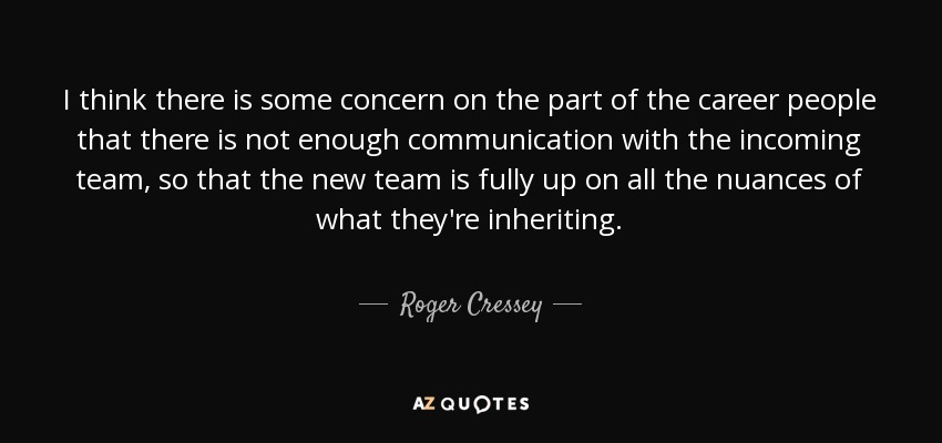 I think there is some concern on the part of the career people that there is not enough communication with the incoming team, so that the new team is fully up on all the nuances of what they're inheriting.