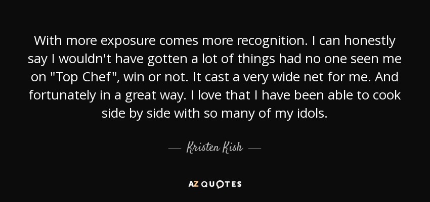 With more exposure comes more recognition. I can honestly say I wouldn't have gotten a lot of things had no one seen me on "Top Chef", win or not. It cast a very wide net for me. And fortunately in a great way. I love that I have been able to cook side by side with so many of my idols.