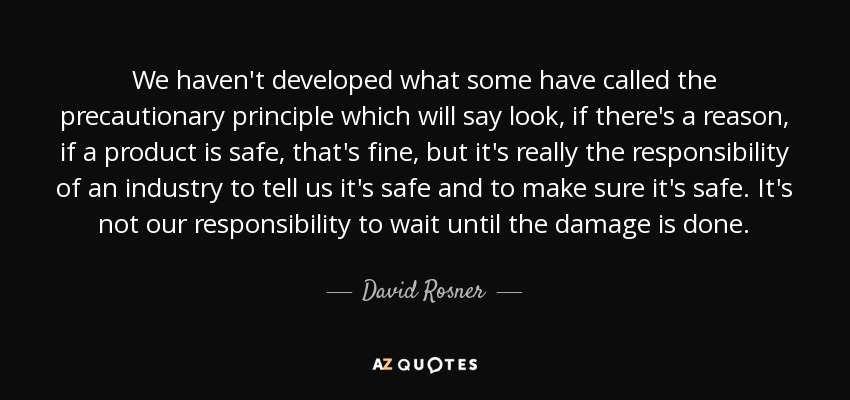We haven't developed what some have called the precautionary principle which will say look, if there's a reason, if a product is safe, that's fine, but it's really the responsibility of an industry to tell us it's safe and to make sure it's safe. It's not our responsibility to wait until the damage is done.