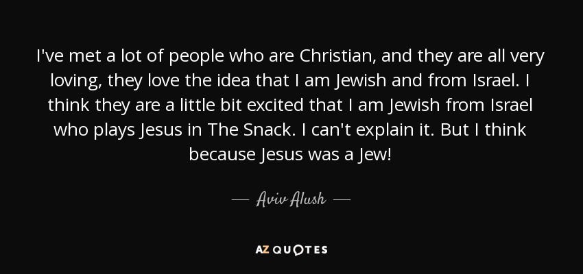I've met a lot of people who are Christian, and they are all very loving, they love the idea that I am Jewish and from Israel. I think they are a little bit excited that I am Jewish from Israel who plays Jesus in The Snack. I can't explain it. But I think because Jesus was a Jew!