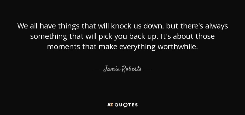 We all have things that will knock us down, but there's always something that will pick you back up. It's about those moments that make everything worthwhile.