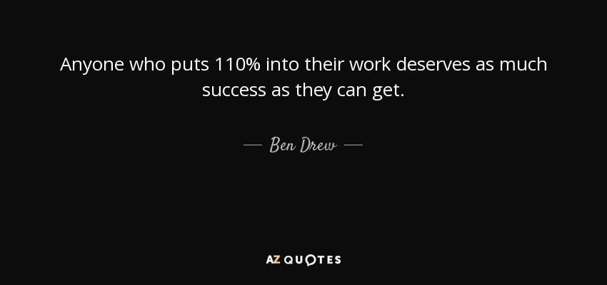 Anyone who puts 110% into their work deserves as much success as they can get.
