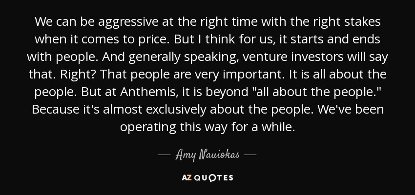 We can be aggressive at the right time with the right stakes when it comes to price. But I think for us, it starts and ends with people. And generally speaking, venture investors will say that. Right? That people are very important. It is all about the people. But at Anthemis, it is beyond "all about the people." Because it's almost exclusively about the people. We've been operating this way for a while.