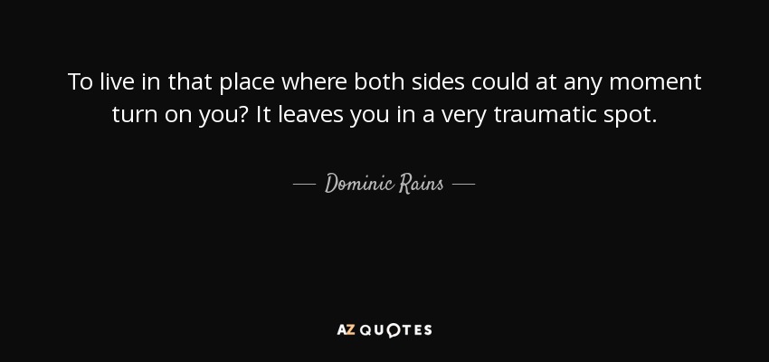 To live in that place where both sides could at any moment turn on you? It leaves you in a very traumatic spot.