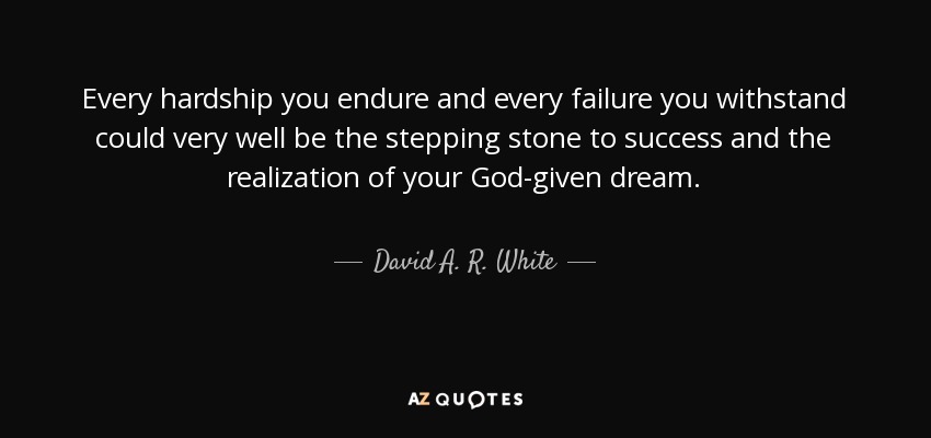 Every hardship you endure and every failure you withstand could very well be the stepping stone to success and the realization of your God-given dream.