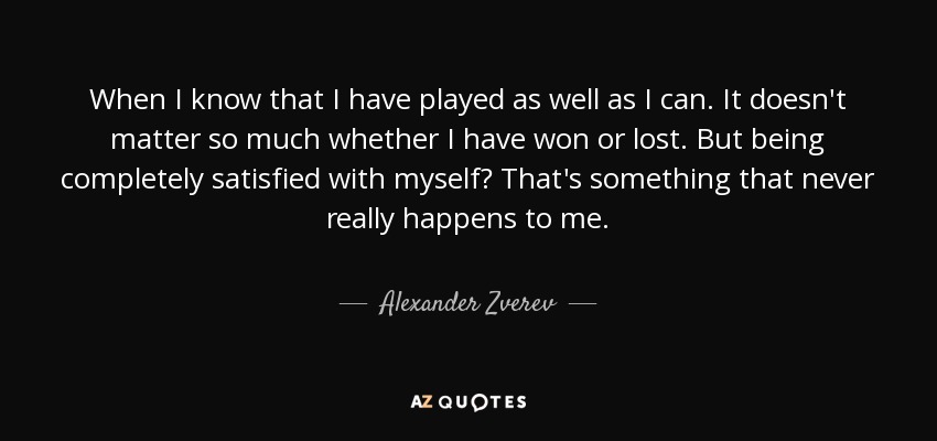When I know that I have played as well as I can. It doesn't matter so much whether I have won or lost. But being completely satisfied with myself? That's something that never really happens to me.