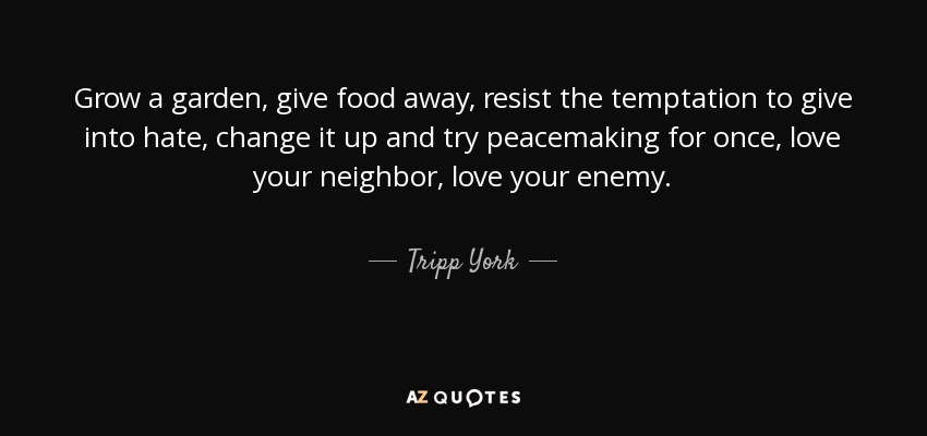 Grow a garden, give food away, resist the temptation to give into hate, change it up and try peacemaking for once, love your neighbor, love your enemy.