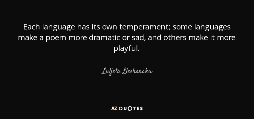 Each language has its own temperament; some languages make a poem more dramatic or sad, and others make it more playful.