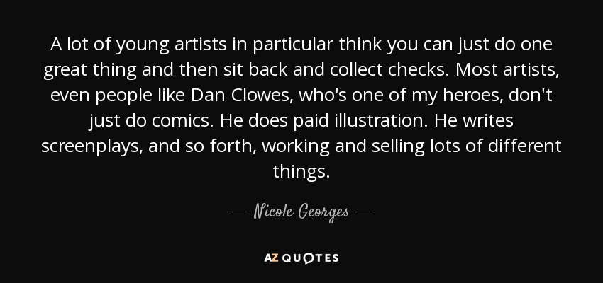 A lot of young artists in particular think you can just do one great thing and then sit back and collect checks. Most artists, even people like Dan Clowes, who's one of my heroes, don't just do comics. He does paid illustration. He writes screenplays, and so forth, working and selling lots of different things.