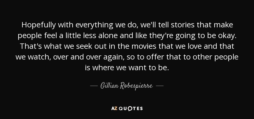 Hopefully with everything we do, we'll tell stories that make people feel a little less alone and like they're going to be okay. That's what we seek out in the movies that we love and that we watch, over and over again, so to offer that to other people is where we want to be.