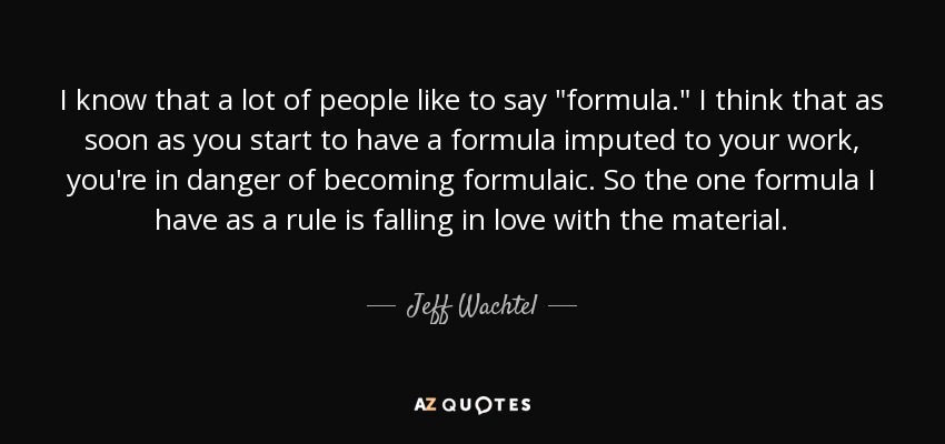 I know that a lot of people like to say "formula." I think that as soon as you start to have a formula imputed to your work, you're in danger of becoming formulaic. So the one formula I have as a rule is falling in love with the material.