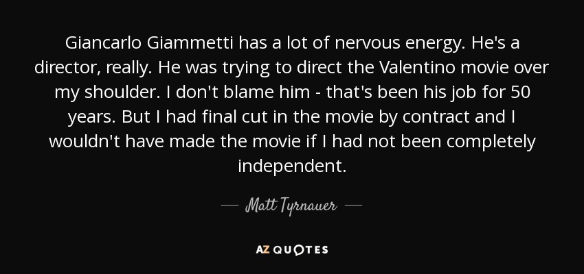 Giancarlo Giammetti has a lot of nervous energy. He's a director, really. He was trying to direct the Valentino movie over my shoulder. I don't blame him - that's been his job for 50 years. But I had final cut in the movie by contract and I wouldn't have made the movie if I had not been completely independent.