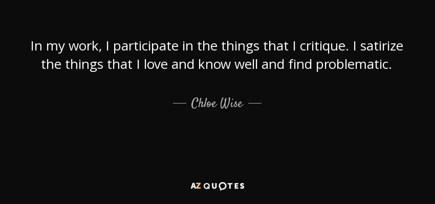 In my work, I participate in the things that I critique. I satirize the things that I love and know well and find problematic.