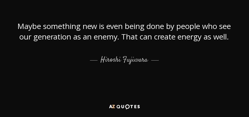 Maybe something new is even being done by people who see our generation as an enemy. That can create energy as well.