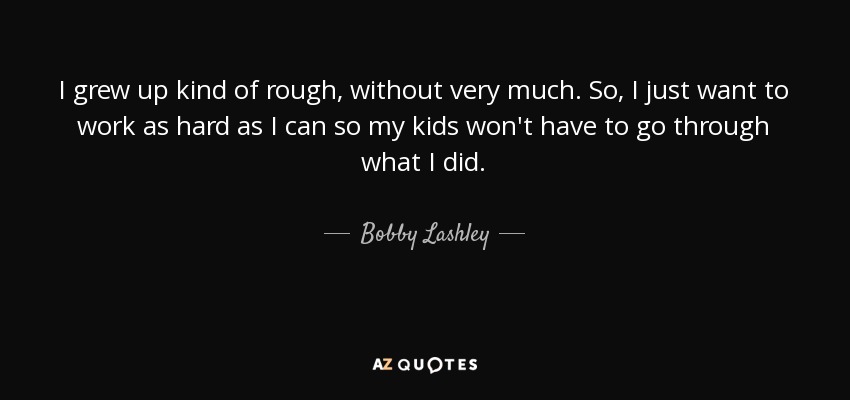I grew up kind of rough, without very much. So, I just want to work as hard as I can so my kids won't have to go through what I did.