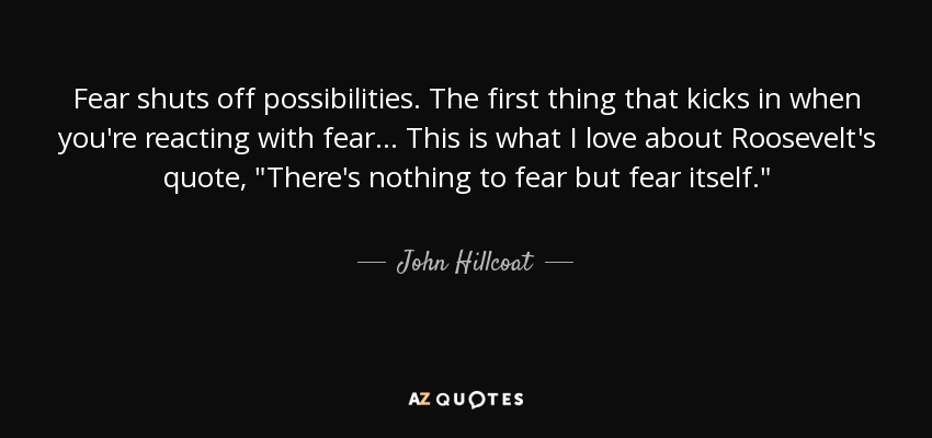 Fear shuts off possibilities. The first thing that kicks in when you're reacting with fear... This is what I love about Roosevelt's quote, "There's nothing to fear but fear itself."