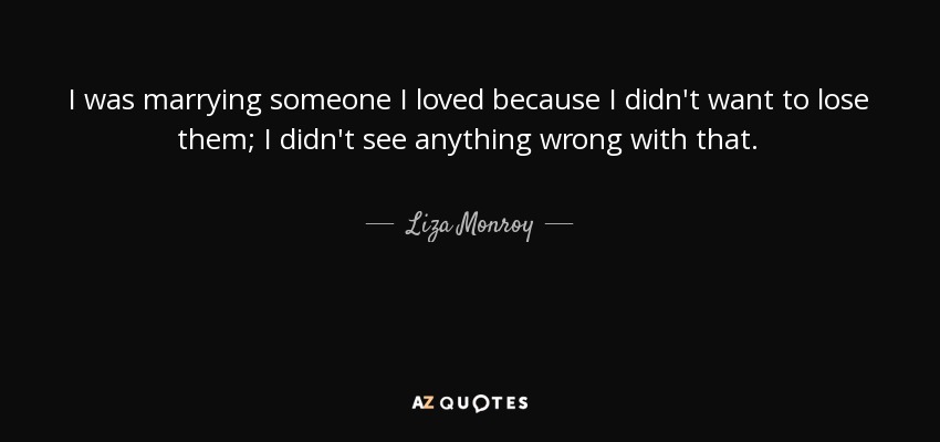 I was marrying someone I loved because I didn't want to lose them; I didn't see anything wrong with that.