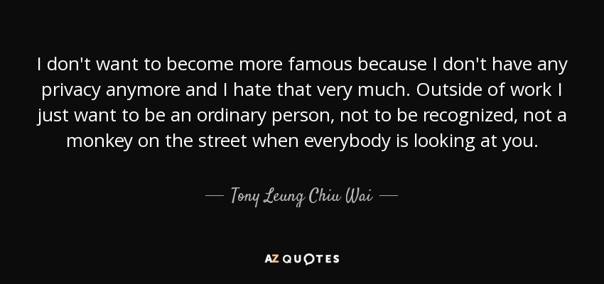 I don't want to become more famous because I don't have any privacy anymore and I hate that very much. Outside of work I just want to be an ordinary person, not to be recognized, not a monkey on the street when everybody is looking at you.