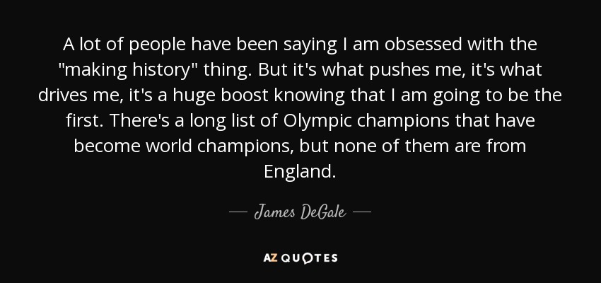 A lot of people have been saying I am obsessed with the "making history" thing. But it's what pushes me, it's what drives me, it's a huge boost knowing that I am going to be the first. There's a long list of Olympic champions that have become world champions, but none of them are from England.