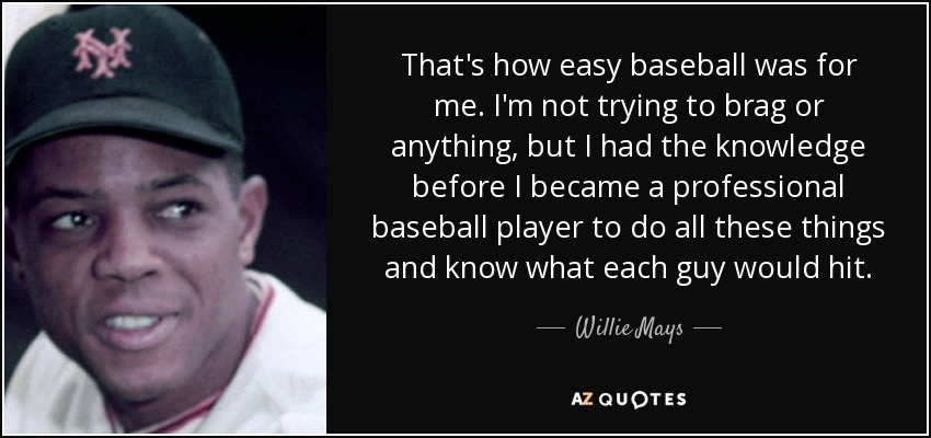 That's how easy baseball was for me. I'm not trying to brag or anything, but I had the knowledge before I became a professional baseball player to do all these things and know what each guy would hit.