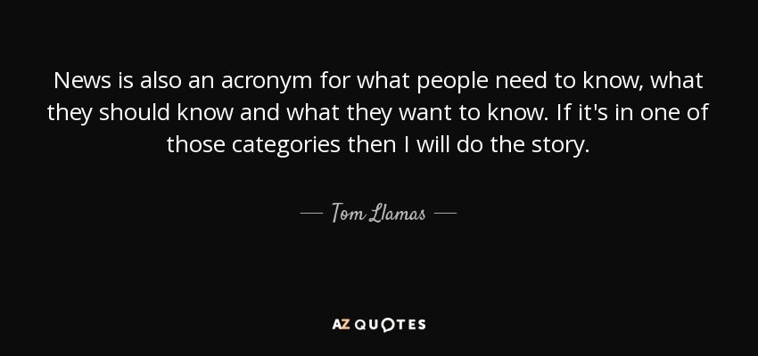 News is also an acronym for what people need to know, what they should know and what they want to know. If it's in one of those categories then I will do the story.