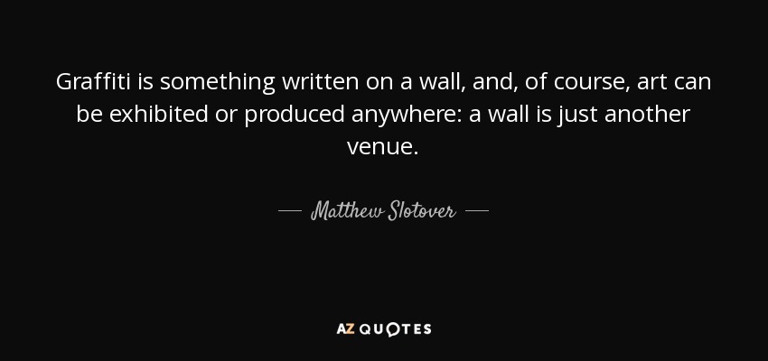 Graffiti is something written on a wall, and, of course, art can be exhibited or produced anywhere: a wall is just another venue.