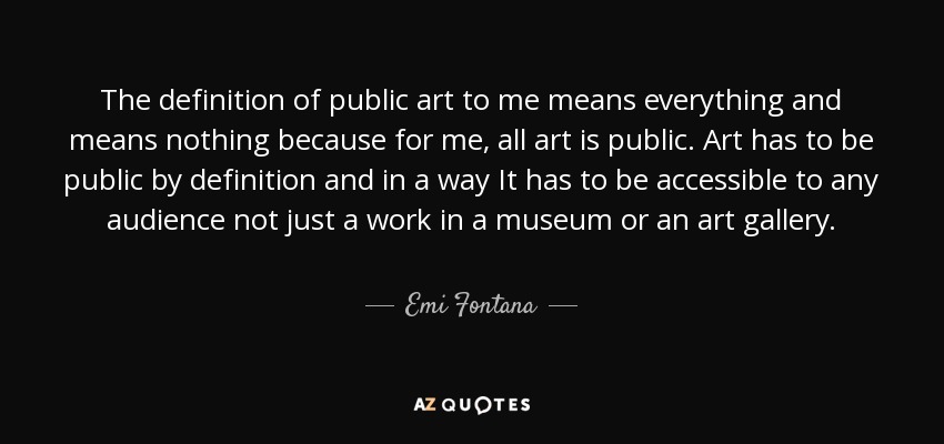 The definition of public art to me means everything and means nothing because for me, all art is public. Art has to be public by definition and in a way It has to be accessible to any audience not just a work in a museum or an art gallery.