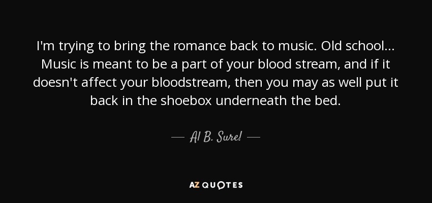 I'm trying to bring the romance back to music. Old school... Music is meant to be a part of your blood stream, and if it doesn't affect your bloodstream, then you may as well put it back in the shoebox underneath the bed.