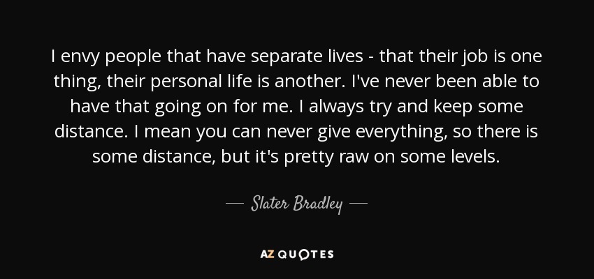 I envy people that have separate lives - that their job is one thing, their personal life is another. I've never been able to have that going on for me. I always try and keep some distance. I mean you can never give everything, so there is some distance, but it's pretty raw on some levels.