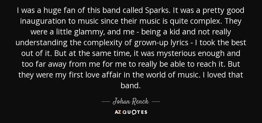 I was a huge fan of this band called Sparks. It was a pretty good inauguration to music since their music is quite complex. They were a little glammy, and me - being a kid and not really understanding the complexity of grown-up lyrics - I took the best out of it. But at the same time, it was mysterious enough and too far away from me for me to really be able to reach it. But they were my first love affair in the world of music. I loved that band.