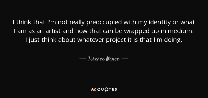 I think that I'm not really preoccupied with my identity or what I am as an artist and how that can be wrapped up in medium. I just think about whatever project it is that I'm doing.