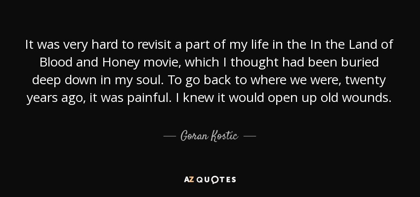 It was very hard to revisit a part of my life in the In the Land of Blood and Honey movie, which I thought had been buried deep down in my soul. To go back to where we were, twenty years ago, it was painful. I knew it would open up old wounds.