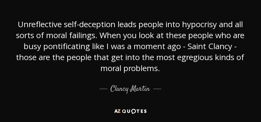 Unreflective self-deception leads people into hypocrisy and all sorts of moral failings. When you look at these people who are busy pontificating like I was a moment ago - Saint Clancy - those are the people that get into the most egregious kinds of moral problems.